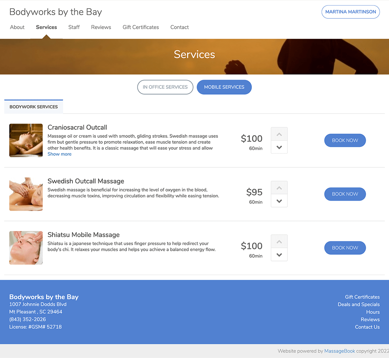 Get started for free and create your free MassageBook website in minutes. Our team is here to help you transition from another service or from a paper calendar. Select the plan that works for your massage business now and MassageBook will grow with you.