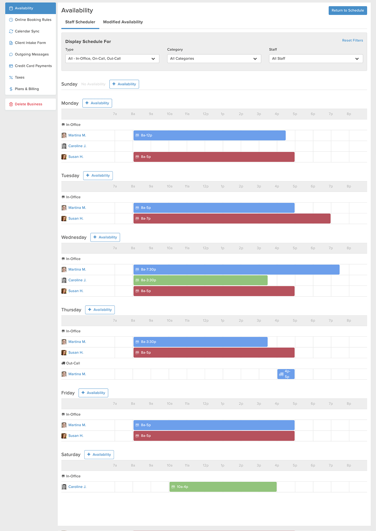 MassageBook was written specifically with the bodywork professional in mind. In the real world, bodyworkers often work in multiple places and may even operate their own outcall business on the side. Much thought went into supporting and simplifying the management of virtually all combinations of scheduling scenarios. Go ahead – just try and give us a challenge we can’t handle!
