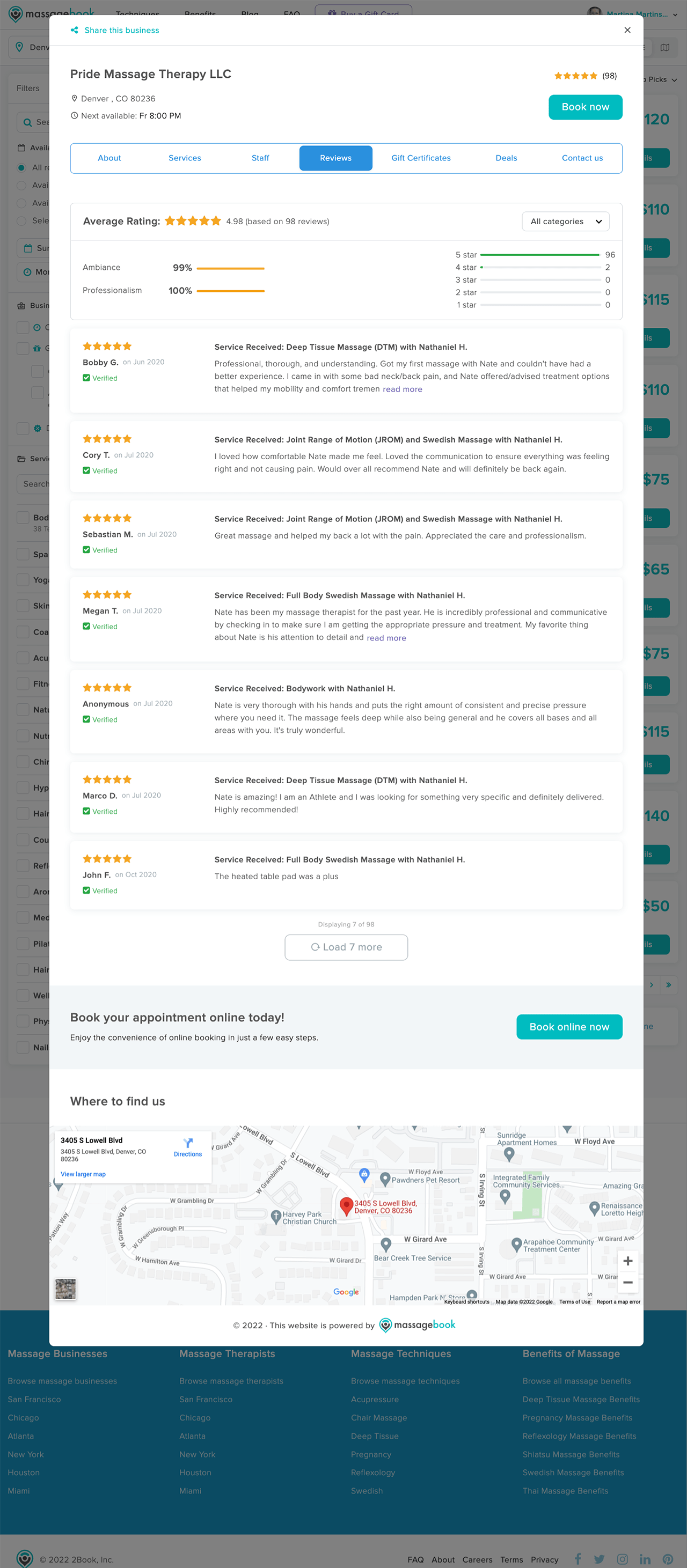You’ve heard it said that “Reputation is everything”. It’s true. But how to build a personal reputation and then, equally as important – how to leverage it to drive your career forward? MassageBook has the unique ability to collect reviews for service providers as well as for the business, making it easy for individuals to build their reputation, increase their local rank, and attract more clients to wherever they work.